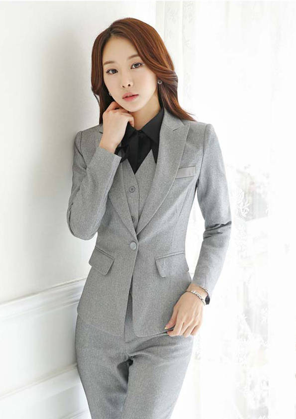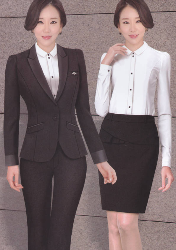 女式正裝是以西服套裝為準,以西褲、裙或西服套裙等在正式,嚴肅場所的著裝。在這三種類型中,每一種都要考慮其顏色和面料。而西服套裙是女性的標準職業著裝,可塑造出強有力的形象。女性的職業服裝比男人更具個性,最佳顏色是黑色、藏青色、灰褐色、灰色和暗紅色。精致的方格、印花和條紋也可以用于正式場合。